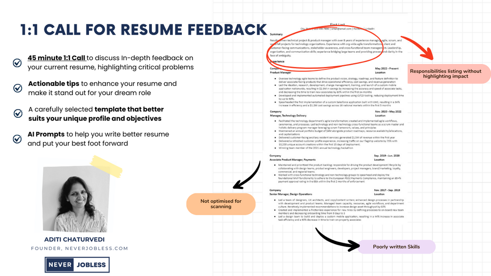 A 60 min 1:1 call with actionable to improve your resume + ATS friendly templates and AI Prompts