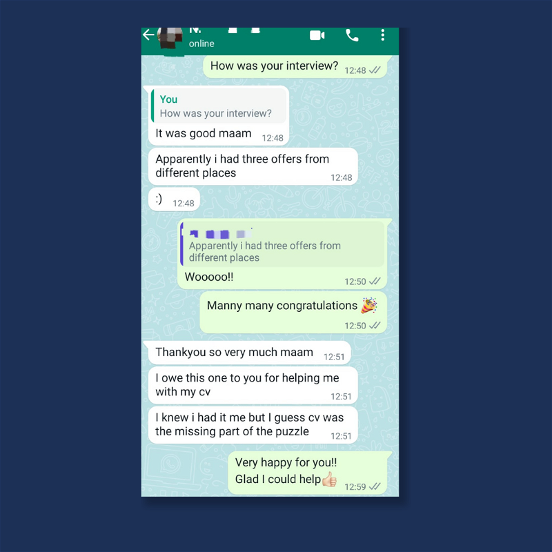 Video call where we discuss detailed feedback on each aspect of your resume and ways to improve. You will also get a AI prompts and free personalized resume template based on your job requirement